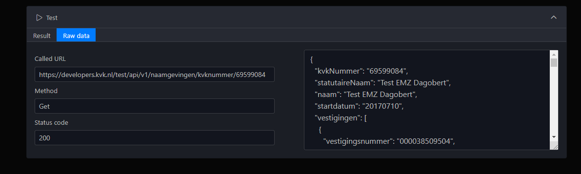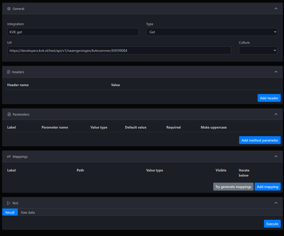 Druk op de knop execute om de koppeling te testen. Daarna is de api beschikbaar binnen de pagina om er iets mee te doen
